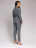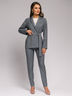 Брюки серые прилегающего фасона — необходимая вещь в гардеробе деловой леди. Аккуратный мелкий принт и классическая длина визуально удлинят ваш силуэт.