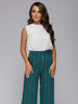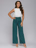 Брюки изумрудного оттенка широкого кроя — незаменимый тренд этого сезона. Вертикальная полоска делает ножки визуально длиннее и стройнее.