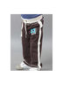 Спортивные брюки прямого силуэта. В пояс вставлена резинка и регулирующий шнурок. Контрастные лампасы.