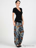 Детали: широкий пояс на резинке, в шлевки продет ремешок, низ изделия присборен на трикотажную манжету