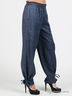 Детали: пояс на широкой резинке, два кармана, низ изделия присборен на кулиску со шнурком