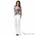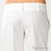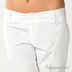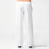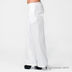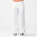 Легкие летние брюки белого цвета. Расклешенный крой брючин. Широкий пояс-кокетка с застежкой на пуговицу и молнию. На поясе шлевки для ремня. Боковые врезные карманы.