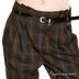 Брюки в клетку, присборенные по линии талии с ассиметричной застежкой и ремнем.