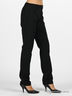 Женские брюки классического прямого, слегка зауженного к низу кроя. Плотная неэластичная ткань с шелковистым блеском. Пояс-кокетка с застежкой на пуговицу и молнию. Шлевки для ремня. Спереди два боковых втачных кармана.