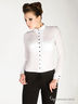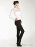 Брюки с регулирующей тесьмой на поясе. Низ оформлен интересным манжетом с полукруглым вырезом и молнией.