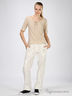 Легкие брюки прямого покроя из 100% натурального хлопка. Отрезной пояс. Шлевки для широкого ремня. Застегиваются на молнию и пуговицу. Треугольная кокетка. Два накладных кармана на молнии, четыре с клапанами. Стильная и комфортная модель.