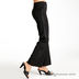 Классические брюки клеш от колена со стрелками. От боковых карманов брюки декорированы атласной тесьмой. Застегиваются на молнию спереди.