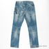 Детали: застежка на молнию и пуговицу, к поясу пришиты шлевки, три передних кармана, четыре задних кармана, эффект потертости