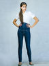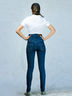 Джинсовые брюки оригинального кроя, с завышенной талией. Силуэт прилегающий по фигуре, зауженный к низу. Спереди застежка на молнию пуговицы. Спереди два кармана, сзади два накладных кармана.