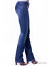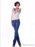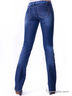 Стильные джинсовые брюки из синего денима с легким вошингом. Силуэт прилегающий по фигуре, с прямым низом. Спереди два втачных кармана, сзади два накладных кармана. Застежка на молнию и пуговицу. Оригинальный фигурный крой задней кокетки.
