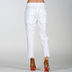 Женские брюки, длиной 3/4. Пояс с хлястиками для ремня, застежкой на молнию и потайную застежку. Штанины зауженные.