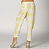 Яркие брюки-бананы в клетку. Спереди пояс собран в двух местах. Брючины на манжетах. Застегиваются брюки на молнию и кнопку. Сзади декорированные кармашки на пуговицах.