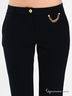 Детали: отрезной пояс со шлевками; застегиваются на молнию и пуговицу; два втачных кармана спереди; имитация карманов сзади; проглажена стрелка; декоративная цепочка