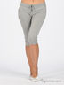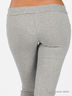 Тренировочные брюки из хлопкового трикотажа. Отрезной пояс со шнурком, позволяющим регулировать ширину пояса. Два втачных кармана, декорированных стразами. Манжеты на брючинах и окантовка карманов выполнена из эластичной трикотажной резинки в рубчик.