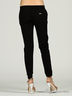 Брюки зауженного книзу кроя. Отрезной пояс со шлевками. Спереди втачные карманы, сзади 2 фальш-кармана. Застегиваются на молнию и пуговичку.