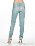 Стрейчевые брюки, зауженные книзу. Отрезной пояс со шлевками. 2 втачных, 2 накладных кармана. Брюки застегиваются на молнию и пуговичку.