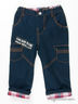 Брюки прямого силуэта выполнены из плотного материала с фланелевым подкладом. В пояс вшита резинка. Застежка на кнопку. К поясу пришиты шлевки. Два передних кармана, имитация задних карманов, два кармана на брючинах. Передняя часть украшена принтом. Декоративные отвороты.