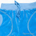 Велюровые брюки прямого кроя. В трикотажный пояс вставлена резинка и регулирующий шнурок. Два передних кармана. Контрастная просточка. Брючины посажены на трикотажные манжеты.