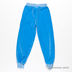 Велюровые брюки прямого кроя. В трикотажный пояс вставлена резинка и регулирующий шнурок. Два передних кармана. Контрастная просточка. Брючины посажены на трикотажные манжеты.