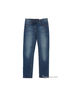 Карманы спереди и сзади. Заклепки и шлевки. Потертый деним. Стандартная высота пояса.