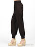 Детали: в поясе вставка из широкой многорядной резинки, низ изделия посажен на эластичные манжеты, спереди изделие декорировано пуговицами