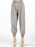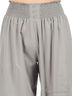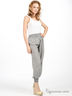 Детали: в поясе вставка из широкой многорядной резинки, низ изделия посажен на эластичные манжеты, спереди изделие декорировано пуговицами