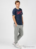 Детали: отрезной пояс на резинке дополнен кулиской; спереди два кармана; низ изделия на манжете; на штанине нашивка