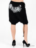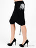 Отличные брюки для йоги из тонкого черного трикотажа, с карманами и завязками сбоку. Заниженный шаг. Сзади белый принт - брилианты. Яркий вариант на каждый день.