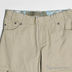Удобные хлопковые брюки бежевого цвета. Имеет шесть карманов: спереди два стандартных кармана и один ближе к коленному сгибу, на молнии; сзади два кармашка, сбоку - один, украшенный рисунком.