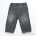 Модель прямого кроя. Имитация застежки на пуговицу и молнию. В пояс вшита резинка, пришиты шлевки. Два передних кармана. Имитация задних карманов. Контрастная прострочка, эффект потертости.