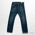 Модель прямого кроя застегивается на пуговицу и молнию. К поясу пришиты шлевки. Три передних кармана, два задних кармана. Эффект потертости.