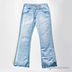 Брюки джинсовые, слегка расклешающиеся к низу.
