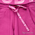 Детали: широкий отложной пояс в рубчик с набивным рисунком, четыре кармана. В пояс продет шнурок, регулирующий ширину изделия