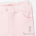 Детали: отрезной пояс на резинке; имитация застежки; два втачных кармана; декоративная пуговица и надпись из страз