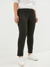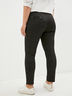 Брюки прилегающего силуэта выполнены из плотного эластичного трикотажа, зауженные к низу. По талии расположена широкая резинка шириной 6 см. По переду идет два кармана с отрезным бочком, декорированные хольнитенами. По спинке также находятся прорезные карманы с хольнитенами. Все карманы декоративные, не функционируют. Брюки имеют великолепную среднюю посадку, хорошо облегают фигуру, плотный трикотаж не подчеркивает ничего лишнего, темные цвета и мелкий орнамент сделают ваши ножки более стройными.