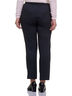 Брюки прилегающего силуэта выполнены из плотного эластичного трикотажа, немного зауженные к низу. По переду идут два кармана с отрезным бочком, декорированные хольнитенами. По спинке находятся две талиевые вытачки, а также два прорезных кармана с хольнитенами. Широкая резинка расположена только по спинке, пояс передней части брюк более плотный, моделирует фигуру, скрывая животик. Брюки имеют великолепную среднюю посадку, хорошо облегают фигуру, плотный трикотаж не подчеркивает ничего лишнего, темные цвета и мелкий орнамент сделают ваши ножки более стройными.
