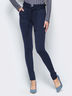 Темно-синие брюки-дудочки из мягкого трикотажа на флисе. Модель с карманами в боковых швах и шлевками для ремешка на талии. Тканевый пояс в комплекте. Изделие подойдет как для повседневной носки, так и в офис. Застегивается на пуговицу и молнию.