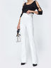 Лаконичные брюки-клёш из костюмного крепа с высокой посадкой. Модель с эластичной деталью по спинке, застегивается на скрытую молнию сбоку. Базовая вещь в гардеробе для создания образа в деловом стиле. Отлично сочетаются с блузкой или объёмным свитером.
