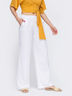 Светлые льняные брюки-клёш с удобными карманами. Пояс по бокам присобран на резинку.
