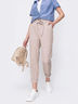 Укороченные брюки, застёгиваются на две пуговицы и молнию. Пояс пришит. Для удобства в носке предусмотрены по бокам карманы.