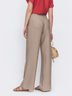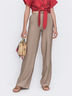 Брюки-клёш из жатой льняной ткани с удобными карманами. Пояс по бокам присобран на резинку.