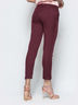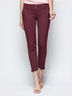 Зауженные брюки-дудочки бордовыйвого цвета. Для удобства предусмотрены шлёвки для ремешка, в швах удобные прорезные карманы. Застегиваются на пуговицы и молнию. Отличный вариант для создания легких весенних образов.