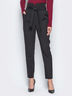 Классические черные брюки из костюмной ткани с завешенной талией. Модель с боковыми карманами и съемным поясом в комплекте. В сочетании с другой одеждой, позволят создать множество образов: от простого casual до строгого office look. Застегивается изделие на пуговицу и молнию.
