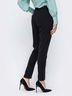 Зауженные брюки с простроченной стрелкой. Изделие застегивается на пуговицу и молнию. Предусмотрены прорезные карманы в боковых швах.