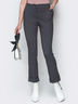Трикотажные брюки черного цвета с подворотами и вместительными карманами в швах. Для удобства в носке предусмотрены шлевки для ремешка. Застегивается на пуговицу и молнию.