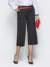 Классические брюки-кюлоты из плотной костюмной ткани. Стандартная посадка и аккуратно выглаженные стрелки придадут образу строгость и презентабельность. Для удобства по бокам предусмотрены карманы. Застегиваются на две пуговицы и молнию.