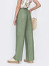 Брюки-клёш из жатой льняной ткани с удобными карманами. Пояс по бокам присобран на резинку.