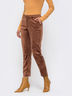 Стильные брюки длины 7/8 из мягкого бархата. Модель с прорезными карманами в боковых швах застегивается на молнию. Для удобства в носке предусмотрены шлевки для пояса. Хорошо сочетаются с однотонным гольфом.