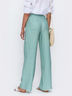 Брюки-клёш из жатой льняной ткани с удобными карманами. Пояс по бокам присобран на резинку.