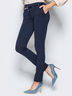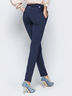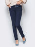 Темно-синие брюки-дудочки из утепленного дайвинга. Модель с карманами в боковых швах и шлевками для ремешка. Широкий пояс с застежкой на три пуговицы и молнию. Идеальный вариант в сочетании с однотонным верхом.